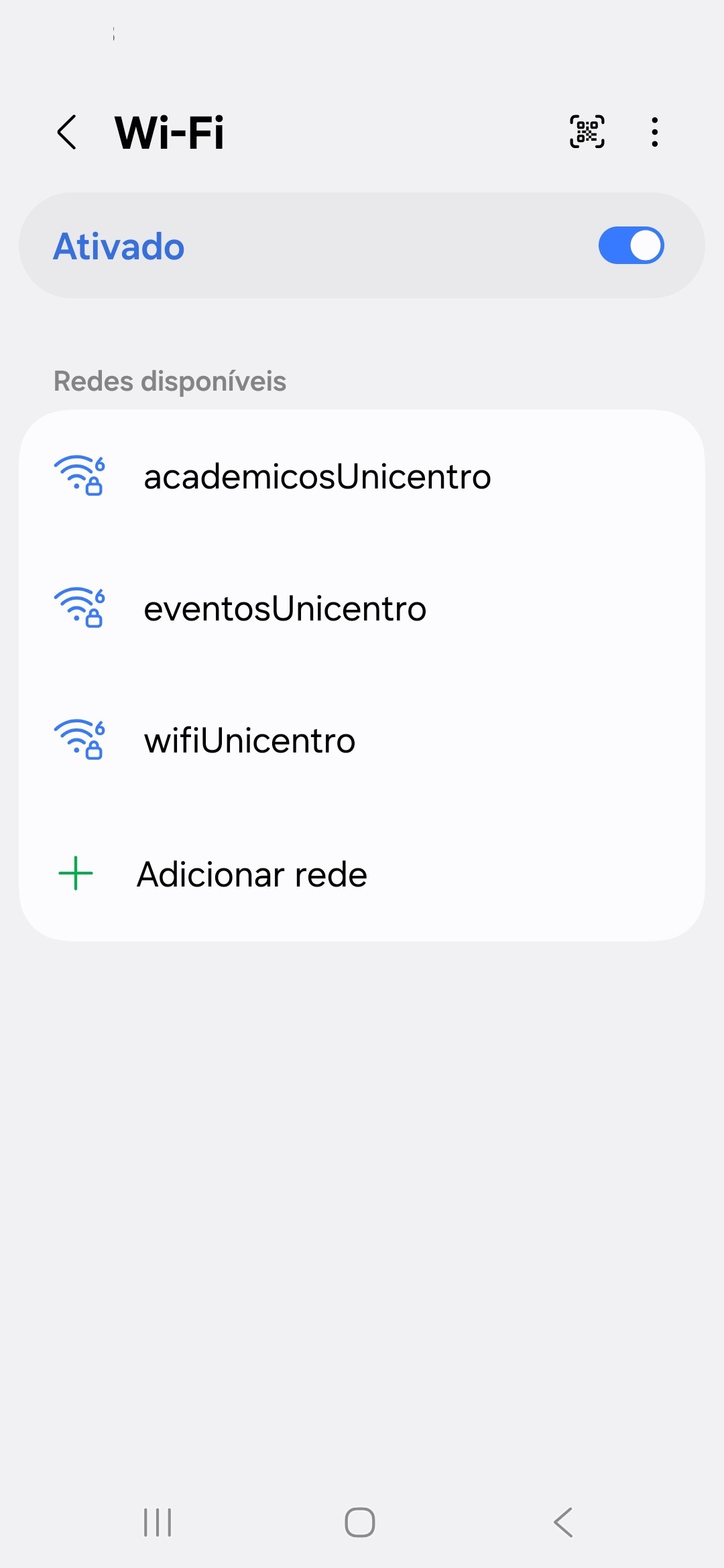 Tela de seleção de redes Samsung